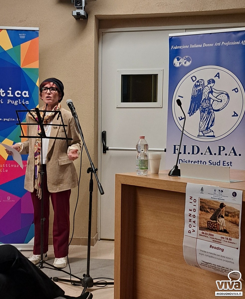 Il 6 marzo, presso il Palazzo della Cultura di Modugno, si è svolto un emozionante appuntamento del progetto "Donne in Viaggio", promosso dalla sezione di Modugno di FIDAPA BPW Italy. La serata di reading e musica ha accompagnato il pubblico in un percorso intenso dedicato al viaggio delle donne come esperienza di libertà, trasformazione e scoperta.