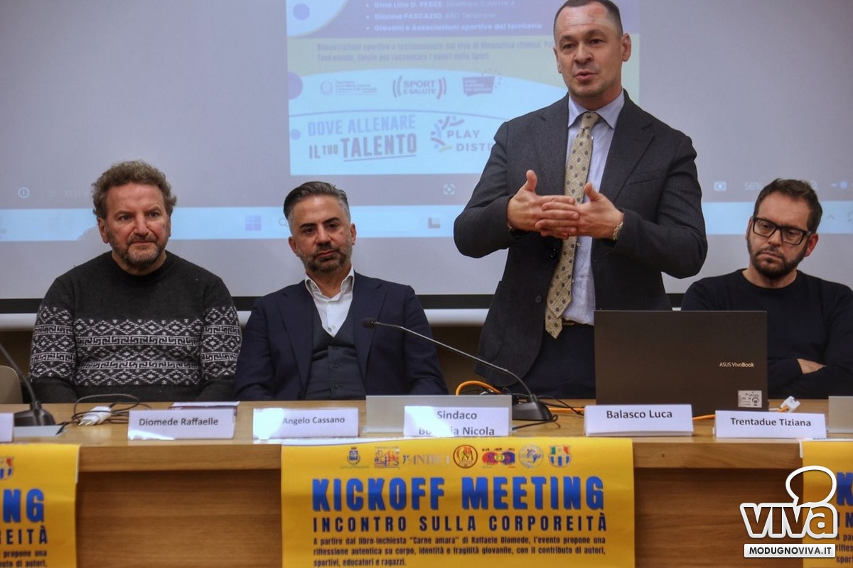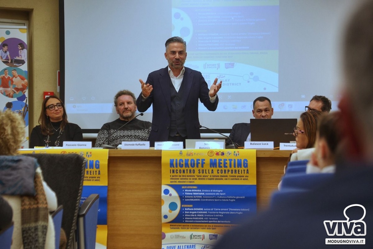 Venerdì scorso, in Biblioteca Comunale, si è tenuto "Kickoff Meeting" dedicato alla corporeità, un momento di confronto che ha aperto uno spazio su corpo, identità e fragilità giovanile. A partire dal libro-inchiesta "Carne amara" di Raffaele Diomede, il dialogo con l'autore, con educatori, sportivi, formatori e con don Angelo Cassano ha permesso di attraversare una pagina di cronaca, trasformandola in un'occasione per riflettere sul valore educativo dello sport.