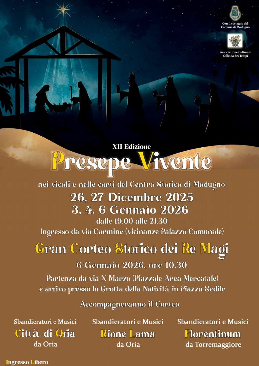 L'Officina dei Tempi torna a incantare il pubblico con la dodicesima edizione del Presepe Vivente, allestito in un percorso completamente rinnovato tra vicoli, corti e scorci suggestivi del Centro Storico di Modugno.
