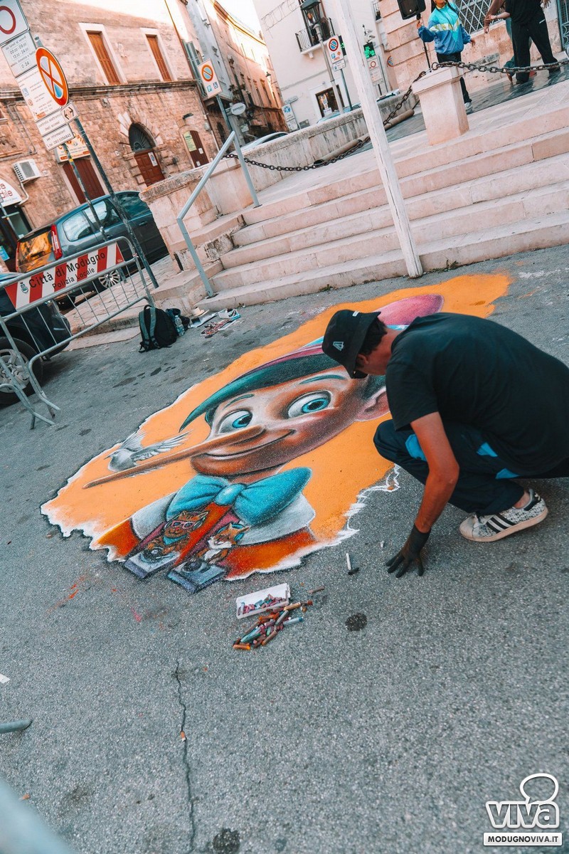 «Partendo da piazza Sedile - prosegue Andrea Ragnini - è stato sviluppato un percorso con mercatini creativi, che hanno ospitato una serie di hobbisti che proponevano la propria arte. Tra le attrazioni c'erano anche ritratti realizzati dal vivo, infatti molte famiglie si sono fatte ritrarre con gli acquerelli. Per i più piccoli sono stati allestiti stand in cui era possibile disegnare, colorare e giocare. Inoltre, l'area comprendeva numerosi stand gastronomici con prodotti locali, esibizioni di danza e ginnastica ritmica. Uno degli artisti ha realizzato anche disegni sull'asfalto con i gessetti ed il centro storico ha ospitato performance di break dance. Di grande rilievo è stata la mostra fotografica curata da Mattia Caputo, nostro collaboratore e video maker, allestita all'interno del Palazzo Scarli, dove sono stati presentati video e fotografie di diversi artisti da lui selezionati, che proponevano la propria arte. Un'area speciale è stata dedicata a giovani pugliesi che hanno realizzato foto e video per artisti internazionali come Salmo, Rose Villain, Achille Lauro e molti altri».